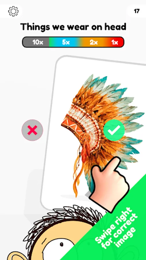 Choose correct or wrong suggestions to simple questions to relax if you are not interested in high scores. Or test how fast you can react and level up your experience.