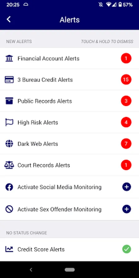 · Main Dashboard to quickly view your current credit score and any new alerts