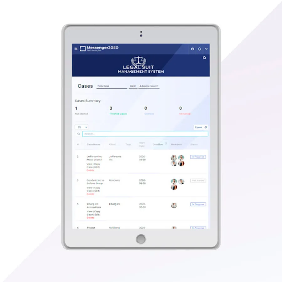 Legal Suit Management System is a complete comprehensive practice management solution for every day to be more efficient and organized. It is the suitable choice for Corporate and Government’s legal departments, leading law firms, Legal Services, Research and Investigation Centers, Consultants, Financial Advisors and Advisory Firms, insurance companies, Financial Institutions and Universities around the world.