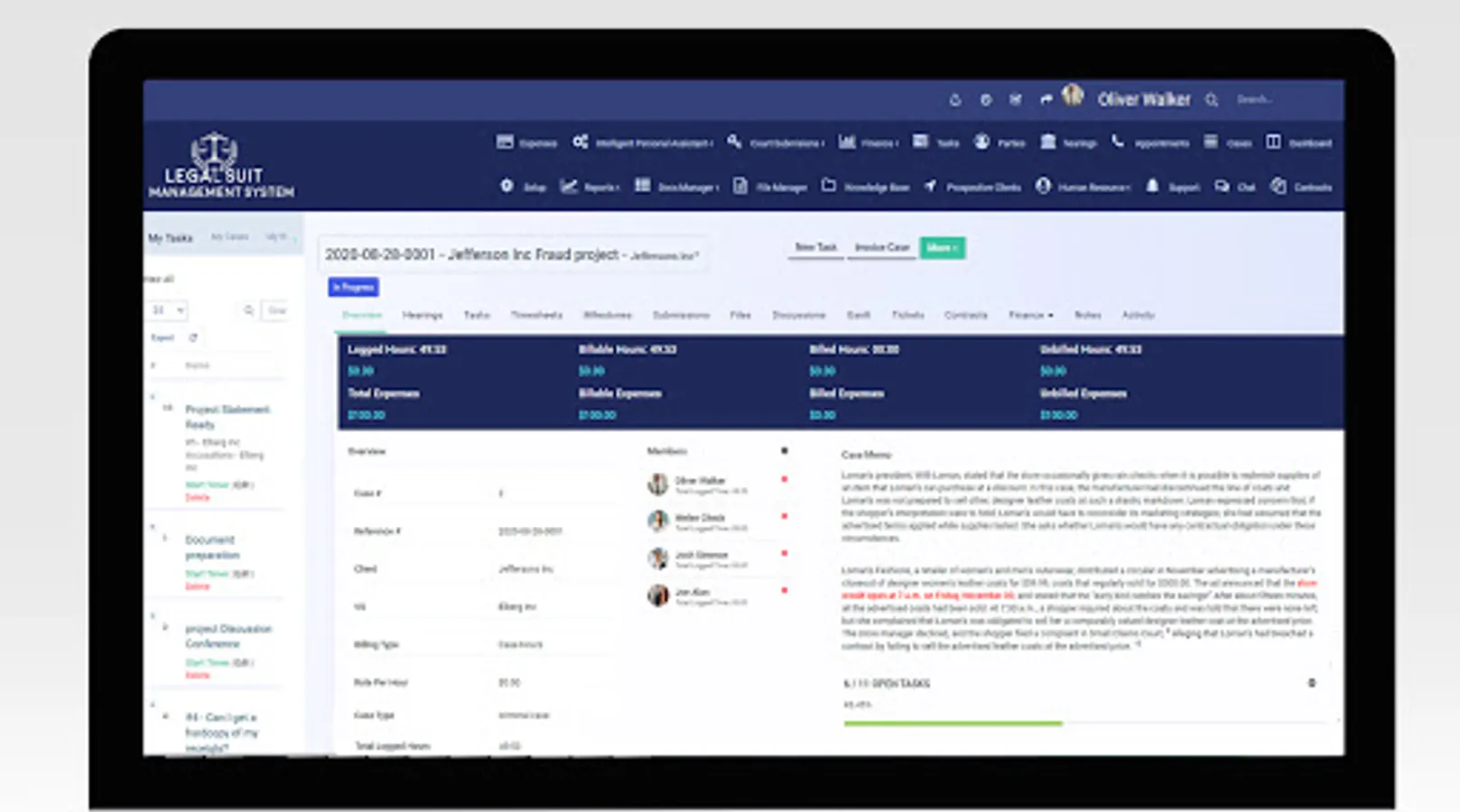 All-in-one practice management solution offers, Case Management, case notes, milestones, track activities, Time & Expense Tracking, Finance, Documents Management, Task Management & Reminders as well as any office management solution such as Human Resources Department, Internal Chatting System and Helpdesk Support System.