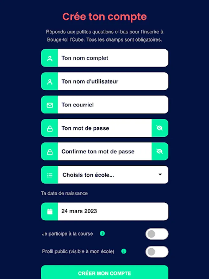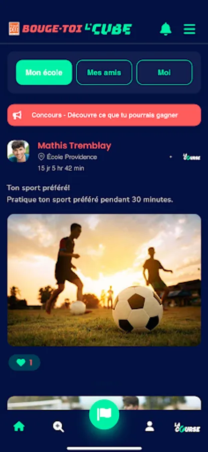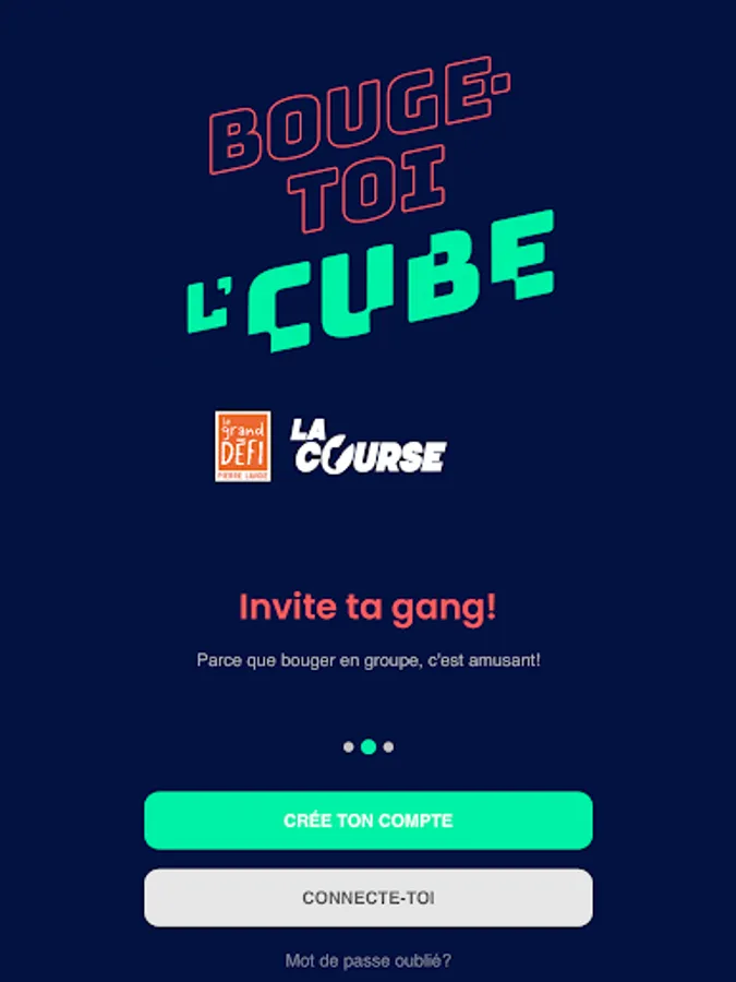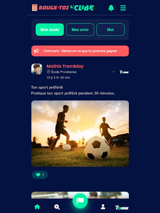 Bouge-toi l'Cube is an active photo challenge application for high school students and presented by Le Grand défi Pierre Lavoie. It is presented in the form of a social media and a virtual event. As a group, young people will have to complete fun and sporting challenges and upload a photo to a news feed. Participants will have the chance to win numerous prizes.