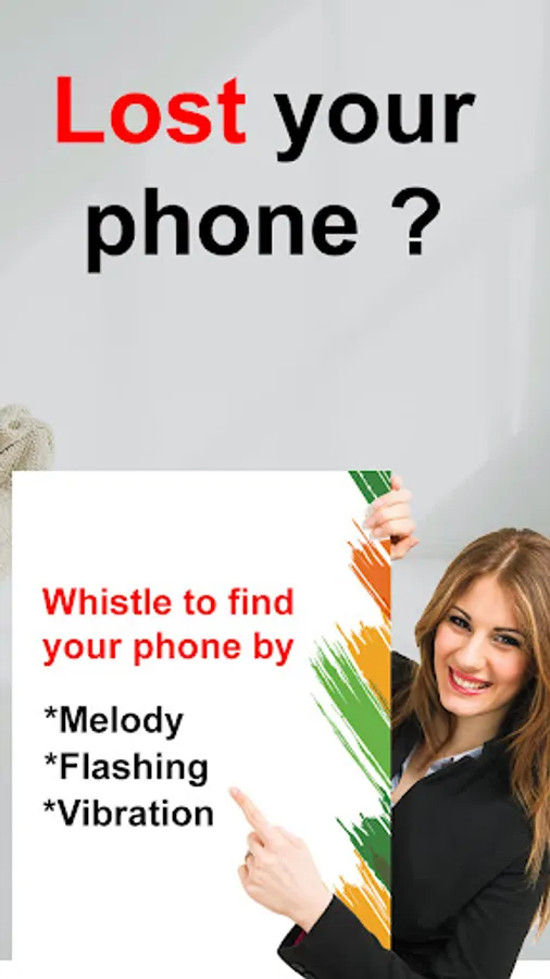 The Whistle & Motion Phone Finder app offers a simple user experience that makes it easy to locate your cellphone. You just have to activate the lost phone finder. Whistle to find my phone Verify that your phone will ring and alert you on its own.