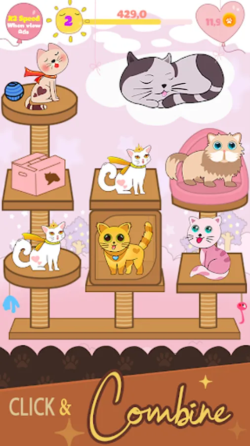 It's simple and addictive fun. See your cats go through an evolution. Gain coins even when you are idle or offline.