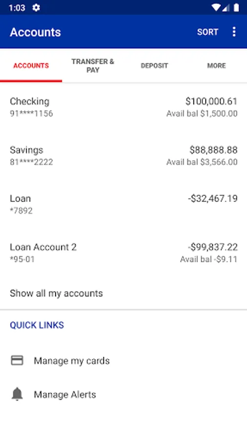 • Transfer money between accounts