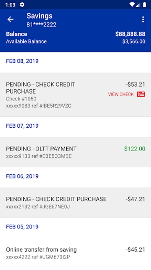 • View recent transactions, including check images