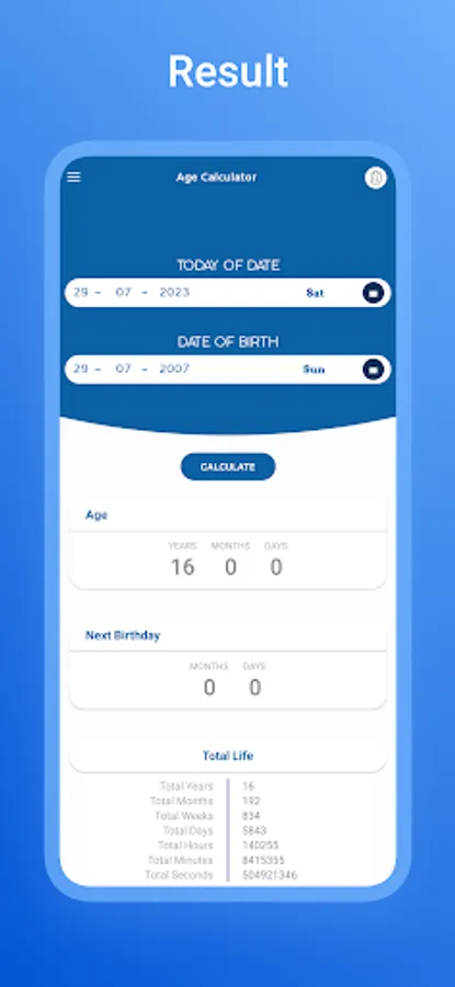 Welcome to Age Calculator, the ultimate app to help you effortlessly calculate your age and countdown to your next birthday! Whether you're curious about your exact age or excited to know how much time is left until your next celebration, this app has got you covered.