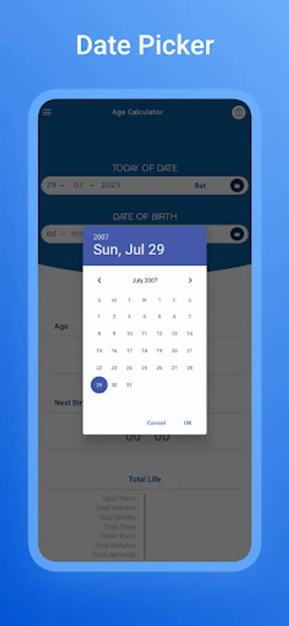 Age Calculator is perfect for anyone curious about their age, planning special occasions, or just wanting to have a little fun. It's a must-have app for birthday reminders, age milestones, and more!