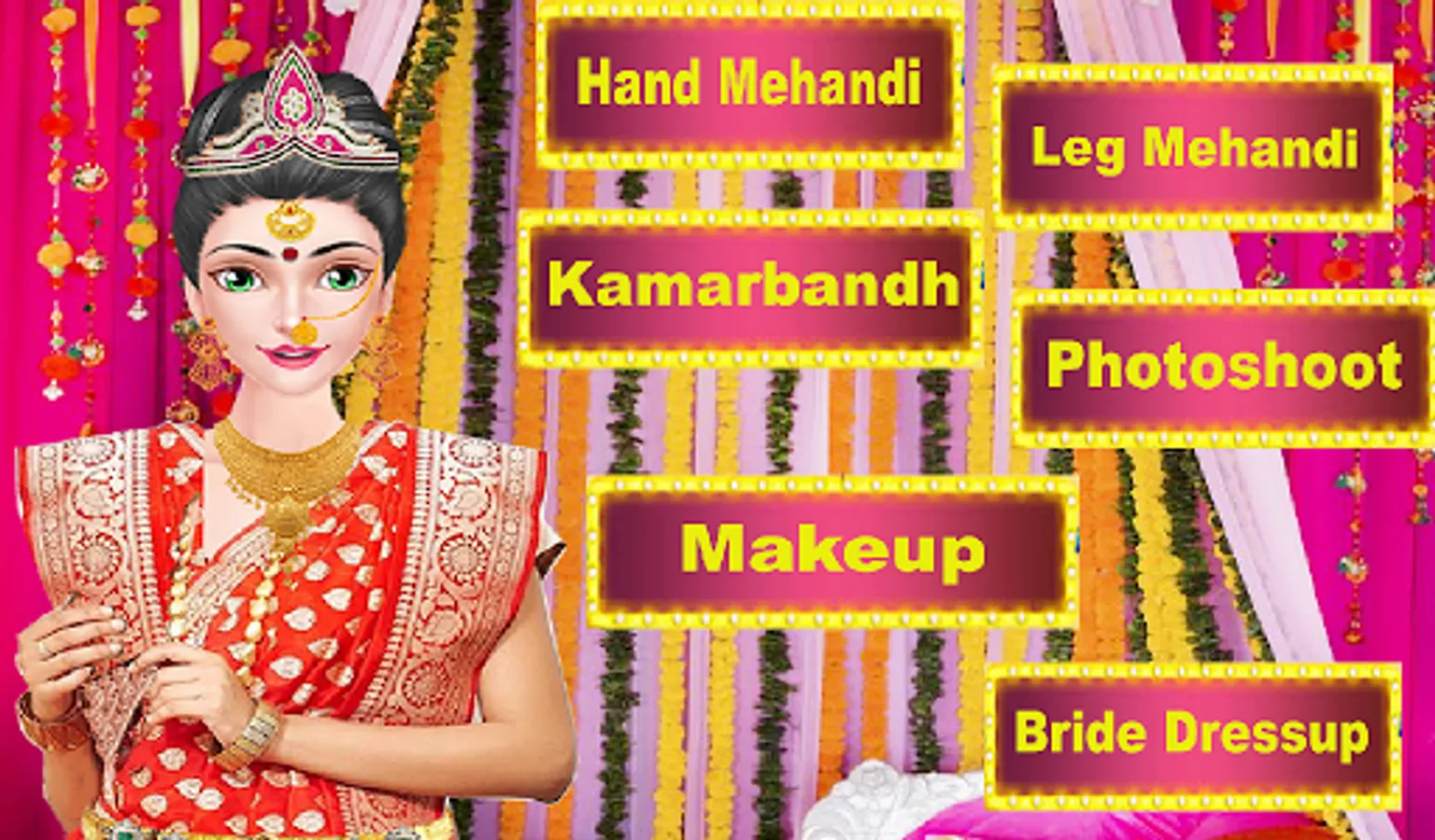 The Indian makeup, dress up and Spa games aware with royal Indian culture. Indian princess doll want to look like bridal Gopi girls in her wedding or her BFFs marriage.Loads of decoration items kamarbandh, earrings, necklaces, and more. Romantic and beautiful couple big royal wedding game.Come to take her to the makeup salon for a beauty makeover. Indian bride dress up and make up games. Indian Girl Makeup Salon. Romantic Wedding Beauty Salon. Indian Beauty Makeup Salon Spa. Bride look like Miss Indian, Miss world Beauty, Queen.Get ready for Royal wedding rituals fashion salon on this Big Fat Royal Indian Bridal Wedding Salon in this Indian wedding Love Marriage games,International Fashion Star Wedding Makeup Artist Salon and wedding makeup salon Bridal looks like bollywood princess.