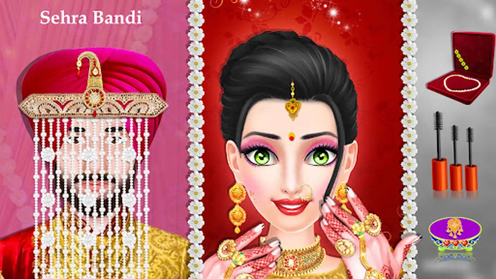 Beautiful Indian bride getting ready to Realistic make-up to create any look your help to. Making up your Punjabi bride avatar with various of combinations of makeup items. Along with darker eyes and a soft pink lip. Her finished the look hairstyle and wedding outfits likes, varmala, fancy patterns, accessories in our girly salon game.
