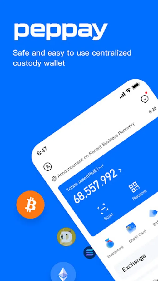 PepPay Wallet is an easy-to-use and secure digital wallet that can easily buy, store, receive and transfer multiple cryptocurrencies, including mainstream digital assets such as BTC, ETH, TRX, USDT, etc.
