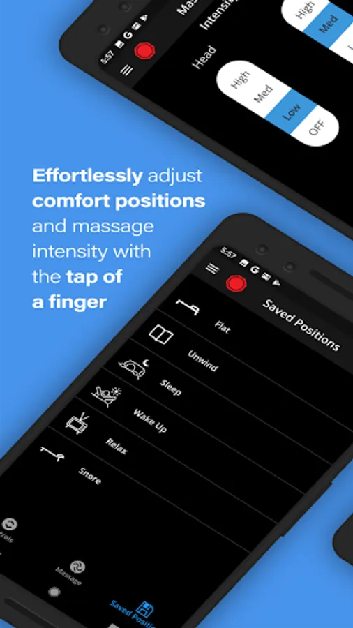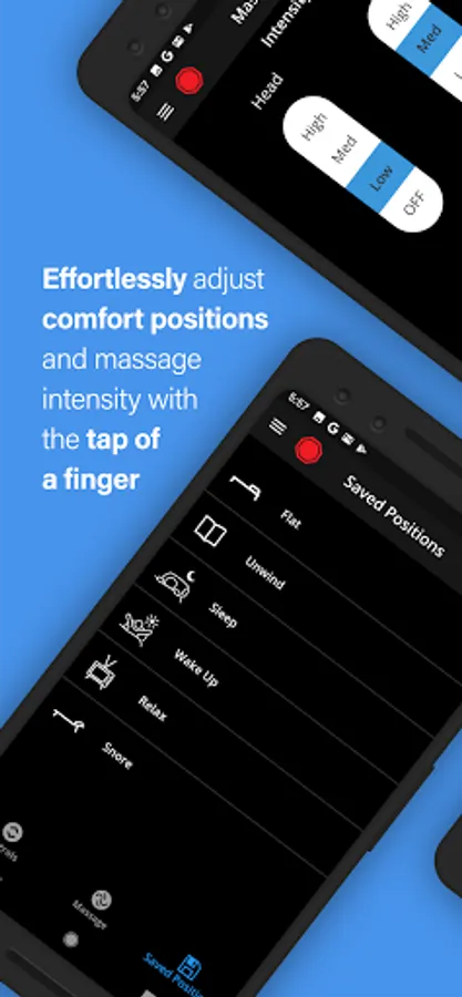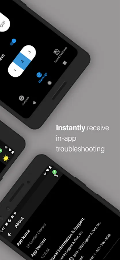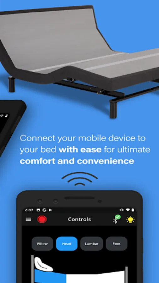 Mobile application to enable the best comfort and relaxation right in your home through the LP Comfort Connect enabled adjustable beds. To utilize this mobile app, an LP Comfort Connect enabled adjustable bed is required. This application provides features such as adjusting the bed position, head and foot massage, saved positions, and multi-colored under-bed-lighting.