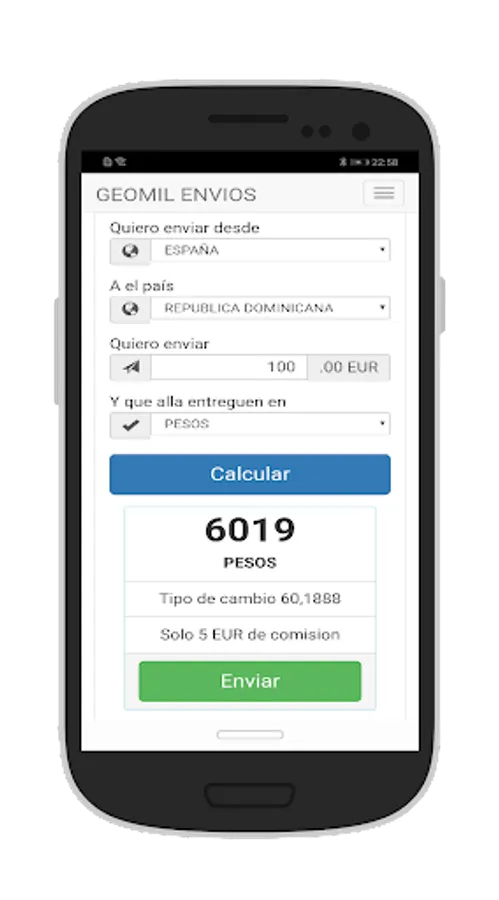 Application for the clients of GEOMIL ENVIOS SA for sending money abroad, GEOMIL ENVIOS SA is a company specialized in immigration services, especially in parcel services and Money Transfer, the most powerful country is Ecuador, but it provides service to many countries in Latin America.