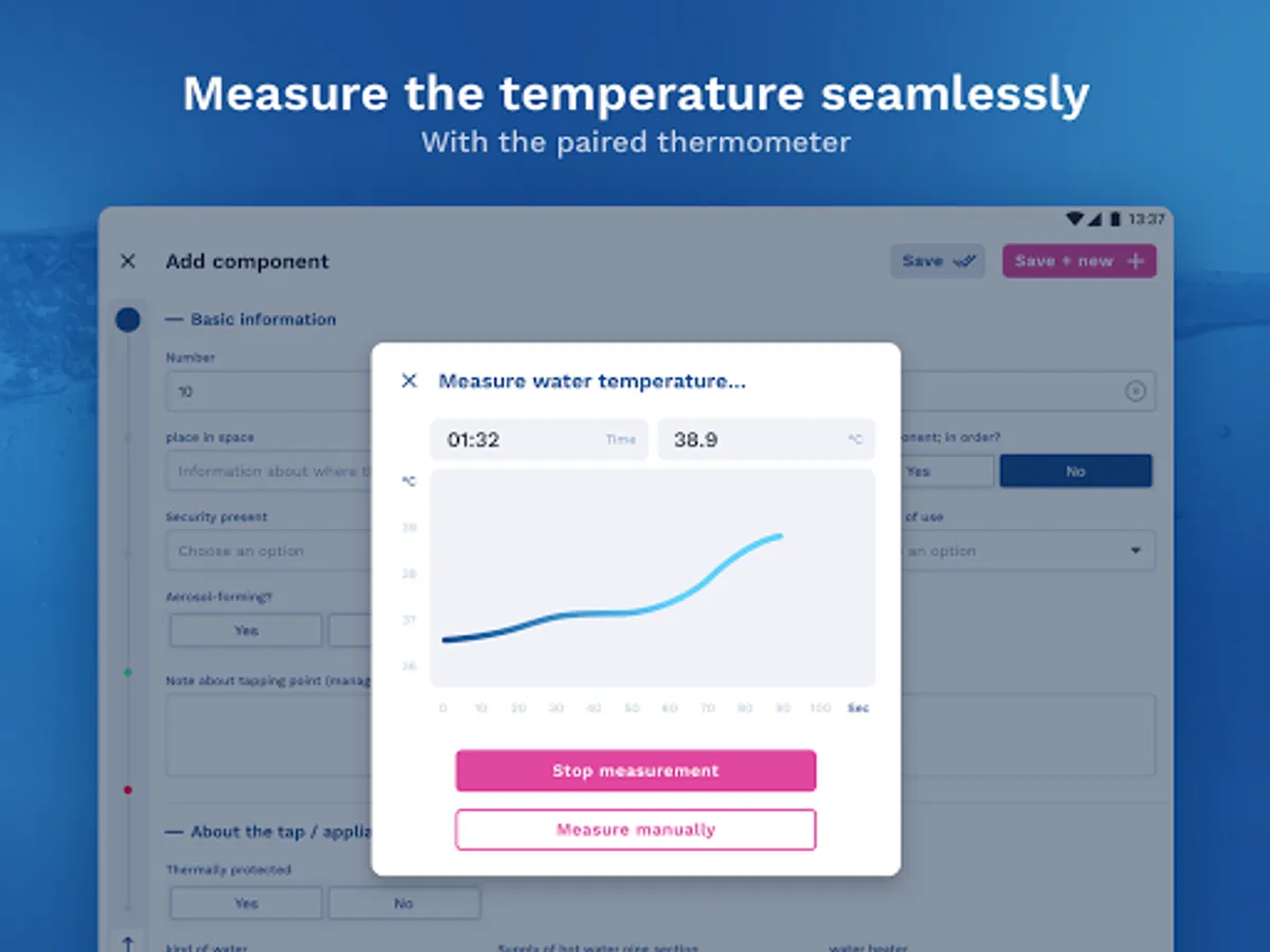 The LegionellaDossier Inspect app makes it possible to save countless hours and error-prone operations for each risk assessment by removing the need for any manual correction or inputs after the fact.