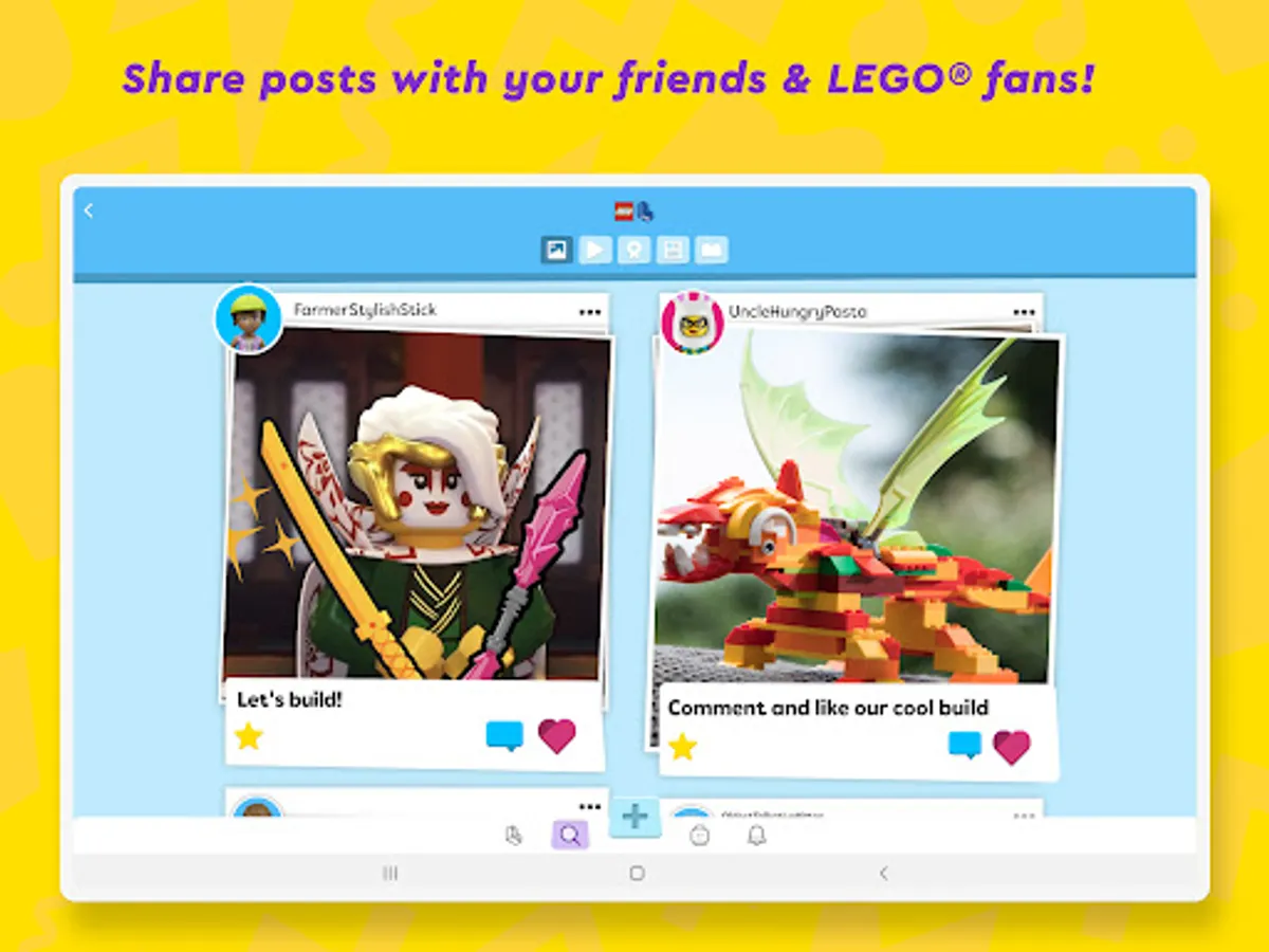 - Use emoticons and text stickers to chat with other young LEGO creators. Children can make friends in this social media app for kids.