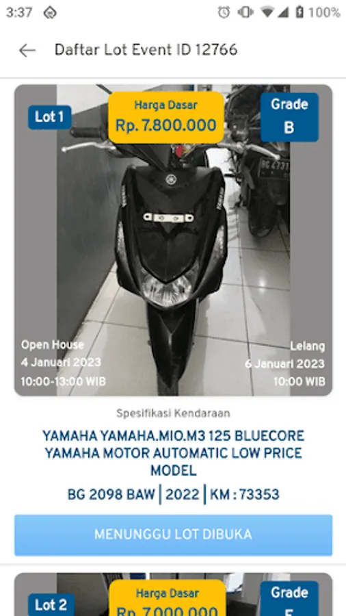 Online auction application managed by the Auction Center PT. Digital Sarana Legoas for the needs of certain motor vehicle auctions.