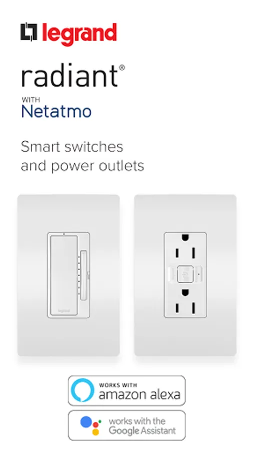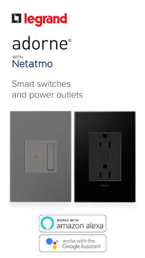 Start with a Smart Gateway, then replace existing switches, dimmers and outlets with adorne and radiant with Netatmo Smart Switches and Outlets for full control of your lights and power.