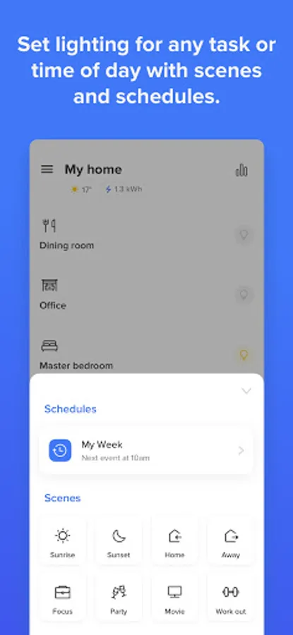 Schedule lights for your arrival, or dim lights to safely navigate the house at night.