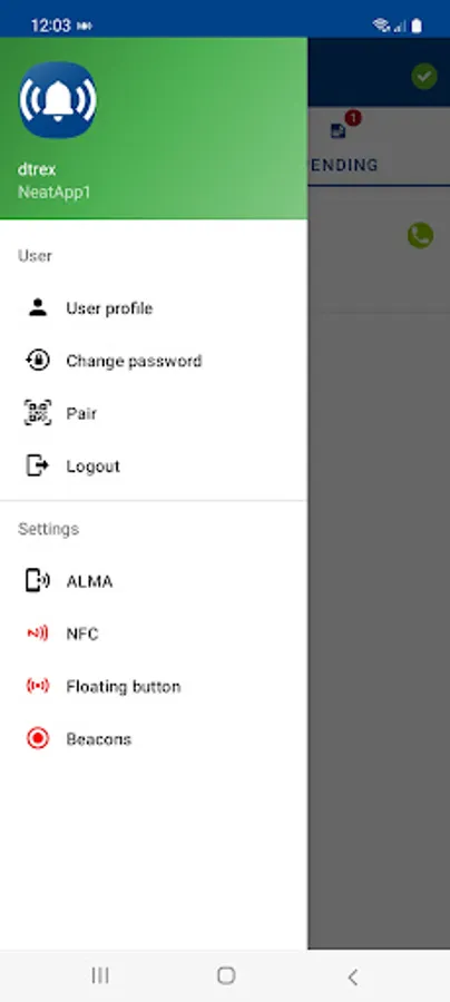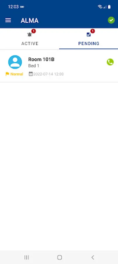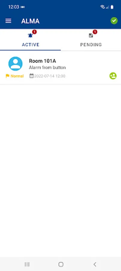 Caregivers can connect and log in to their workplace with the ALMA app. Once logged in, they can browse active alarms and see accepted alarms. New alarms are displayed as a notification on the phone with the option to accept or reject the alarm. Presence and ready indication is easy to perform from the app but also to request assistance. A long press on the red help button will request help.