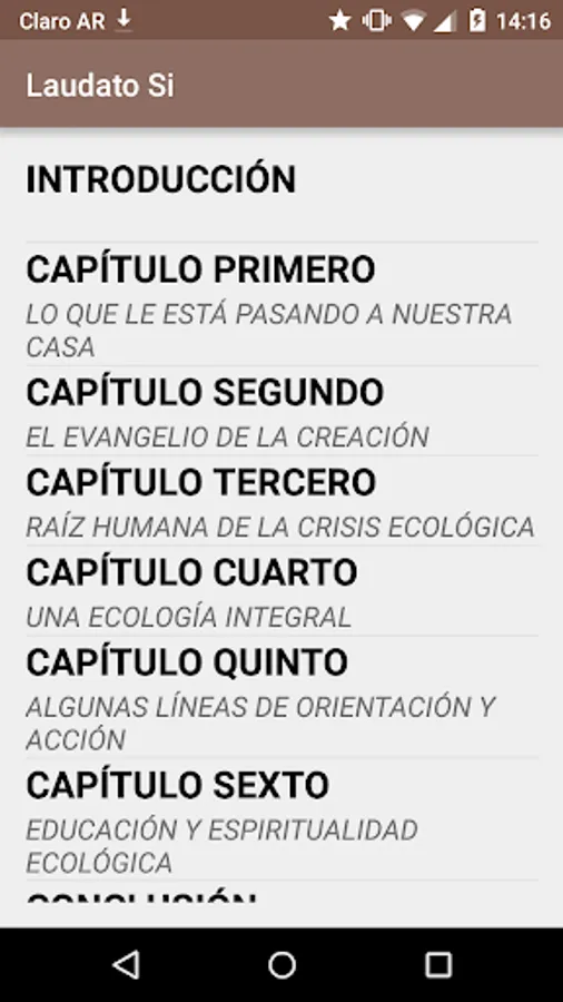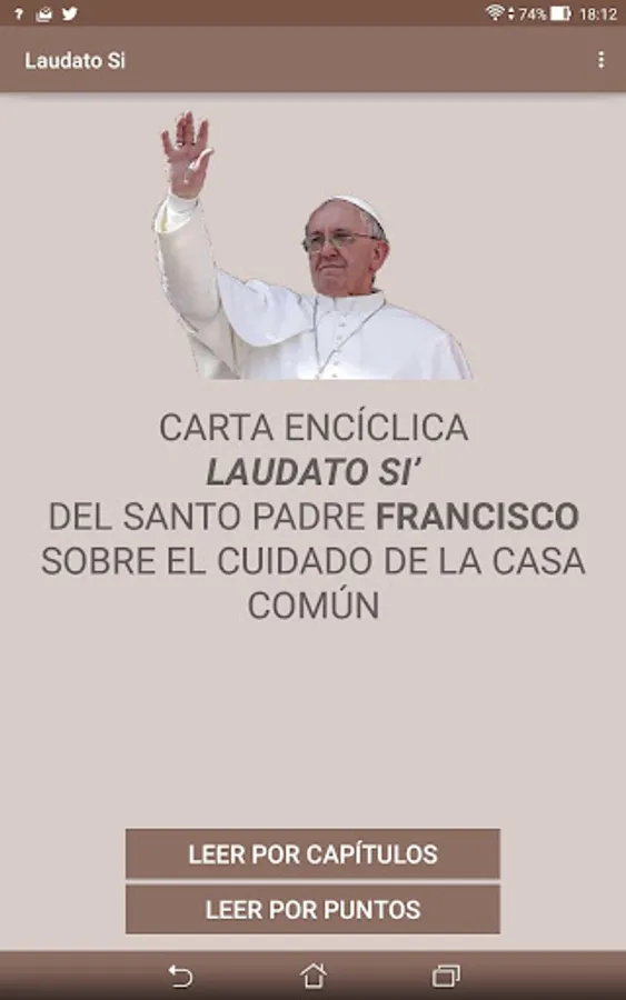"I invite accompany the publication with a renewed attention to situations of environmental degradation , but also improvement in their own territories This encyclical is addressed to all . Pray for us all to get your message and grow in responsibility towards the house common that God has entrusted to us , "Pope Francis said . This application presents the text of the encyclical can be accessed by chapters or point by point.
