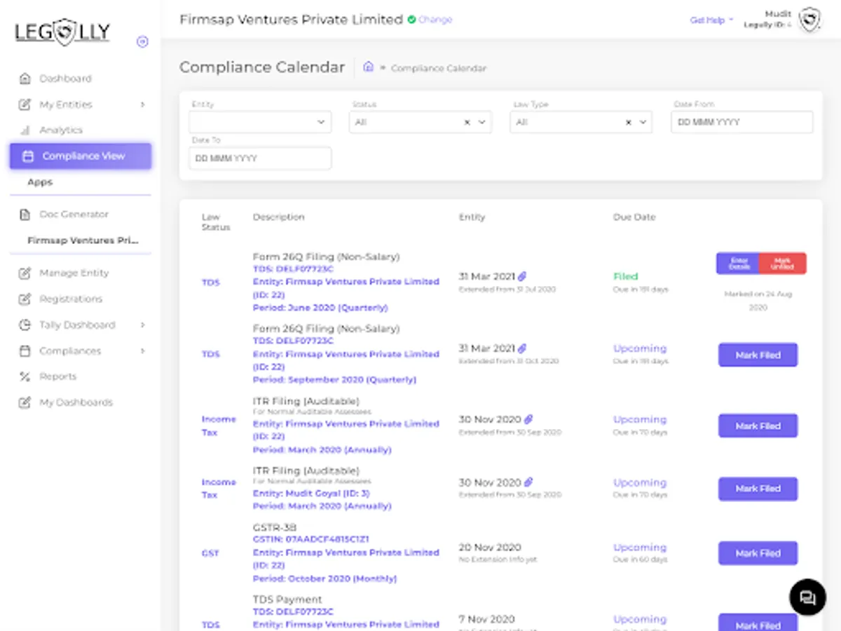 Our advanced compliance system not only notifies you about your upcoming compliances but also marks them filed when you actually file them!