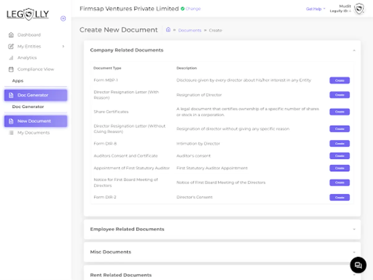Whether it's a Private Limited or a LLP or a HUF, Legully allows you to manage all your entities (Individual, Partnership, Company, HUF, LLP, Society, Trust, AOP, and BOI) at one place along with all your registrations such as PAN, GST, TDS, FSSAI, ESI, PF, PT, LWF, IRDA and even more!