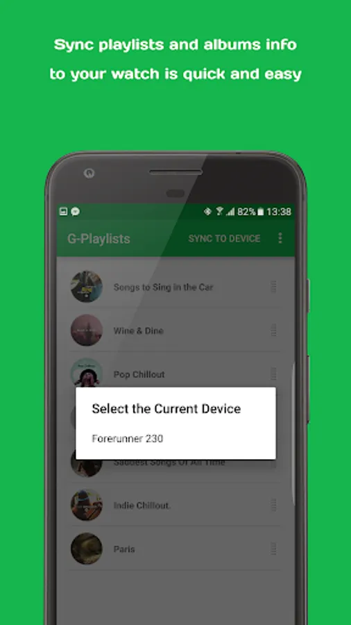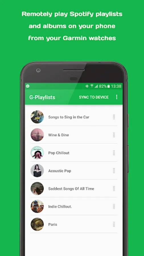This is the companion app for G-Playlists widget that you install on your Garmin watch. It turns your watch into a Spotify remote that lets you remotely play playlists and albums of your choice.