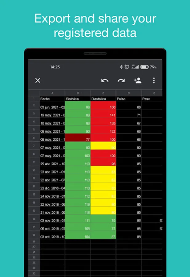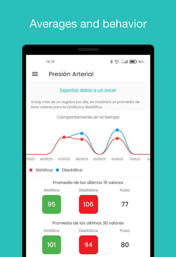 * You can even export all your data in Excel and send it to the people you want, even your doctor.