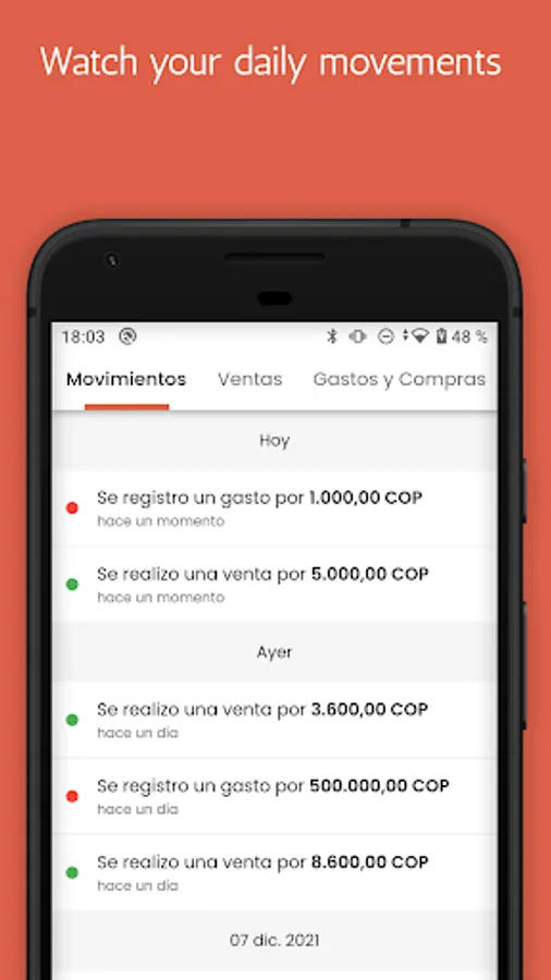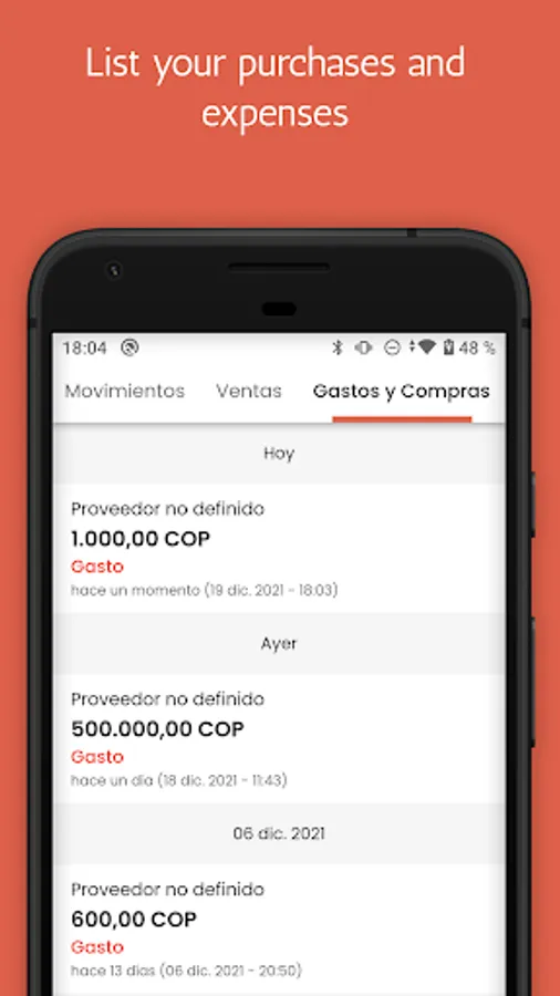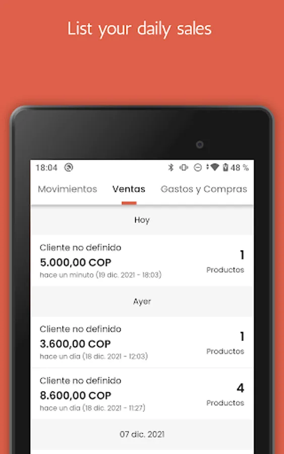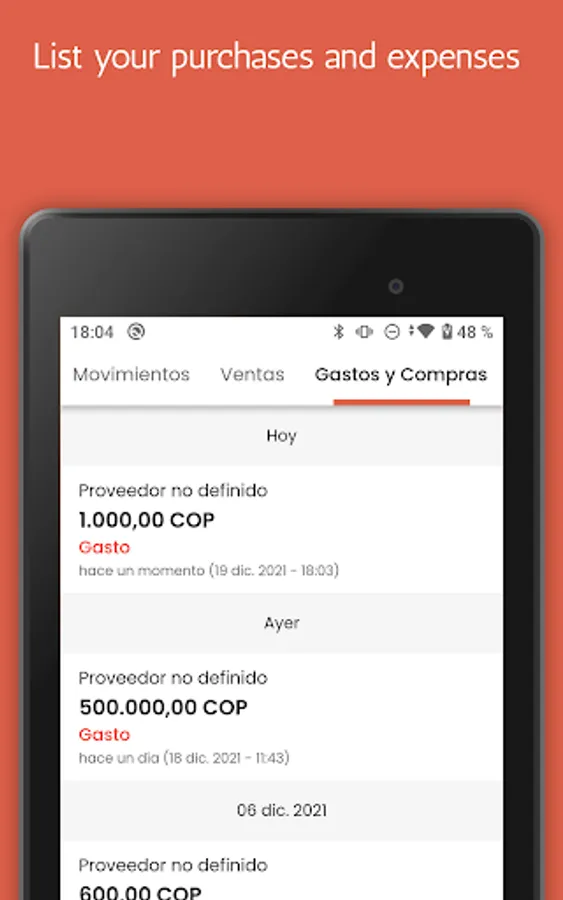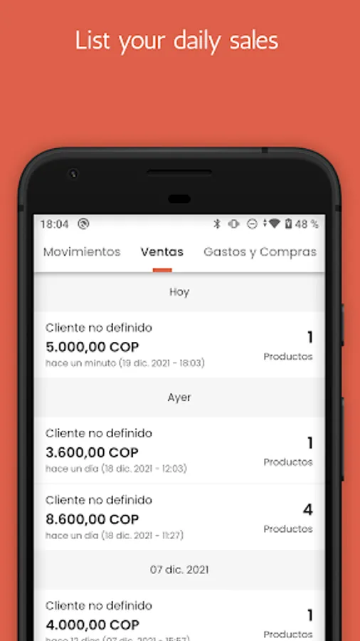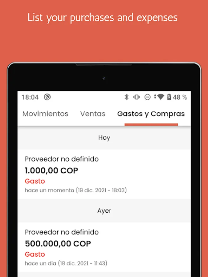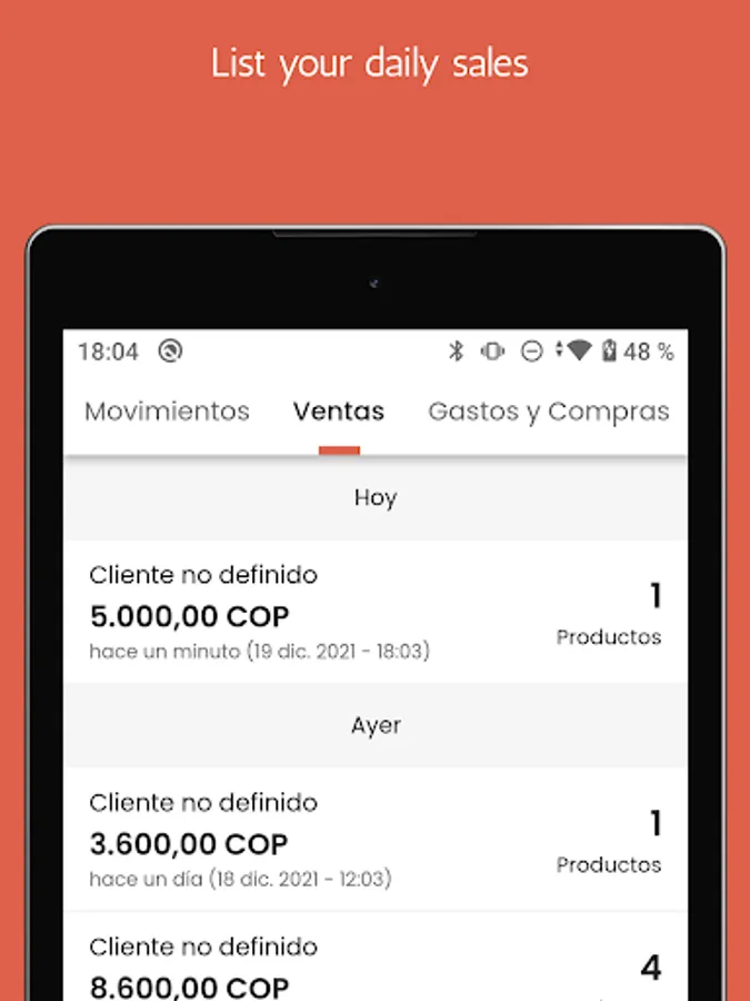 Keep track of your sales, purchases and expenses easily and for free, you just have to create your business, register your products and start taking control.