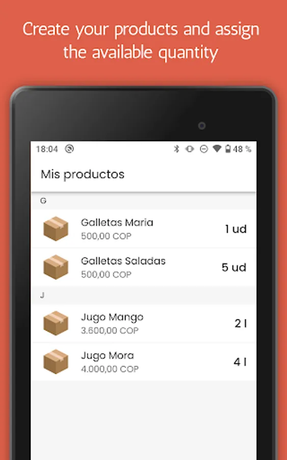 For your products, you can take a photo, add their name, a description, the available quantity and the sale price.