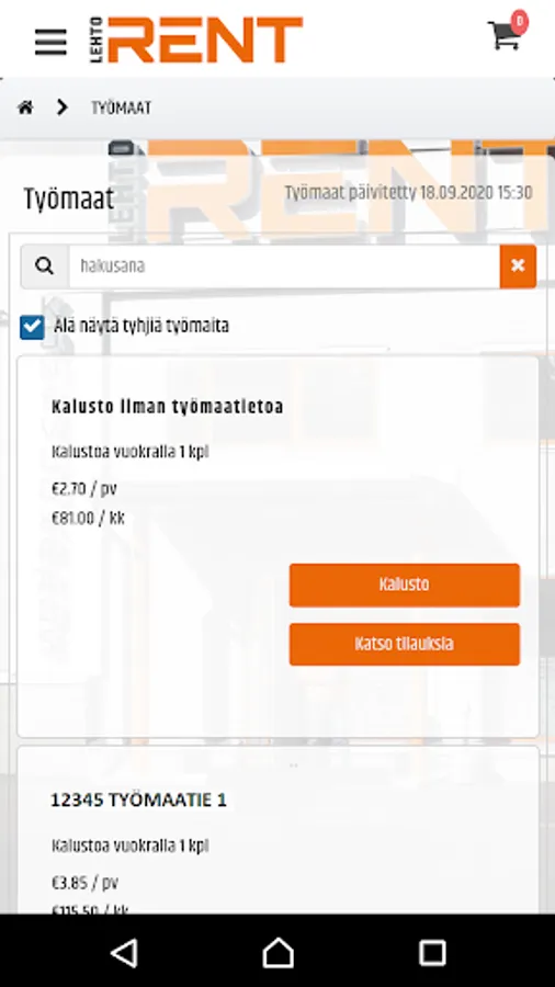 The Lehto-Rent application allows for leasing and rental of rental equipment