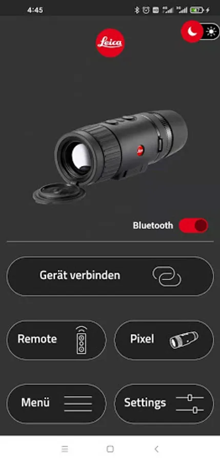 The app is used to connect the Calonox Sight to the smartphone. This enables more convenient operation, for example in the "Reticle correction mode". The smartphone is used as a remote control in the newly integrated function. This greatly simplifies both changing settings and reading off the correction values. Other function settings can also be used via the app. Personal data will not be stored or passed on.
