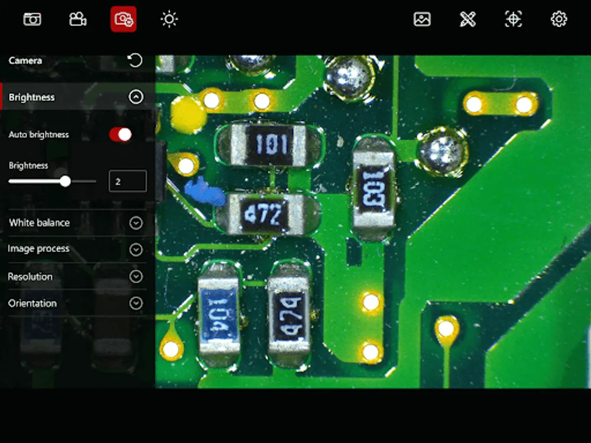 - Adjust numerous camera setting: auto-brightness, white balance, etc.