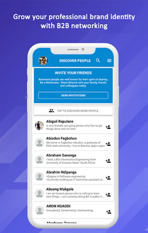 iBranch is a business and social network orientated recruitment platform in Africa. Our core mandate is bridge the unemployment gap on a continental scale. To achieve this, we are constantly playing as a match-maker between those with skills and those in need of the attained skills through our revolutionary mobile app.