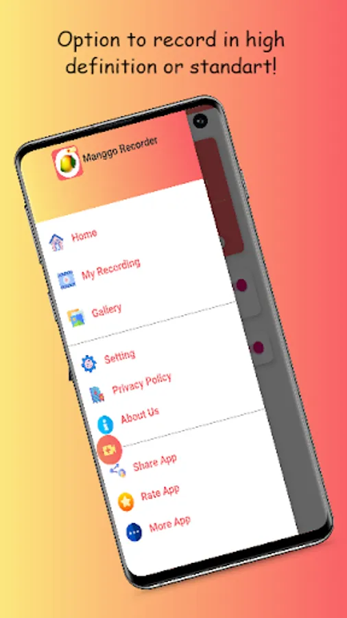 Use Mango Recorder - Screen Recorder to record activities on your smartphone and share! Use it for free anytime. Equipped with HD and standard quality video recording features. With a unique and attractive appearance will make you feel at home to operate this application. In addition, the user experience display that is easy to understand will not make it difficult for you to use this application. Invite your friends to use this application and share videos that you record from your smartphone!