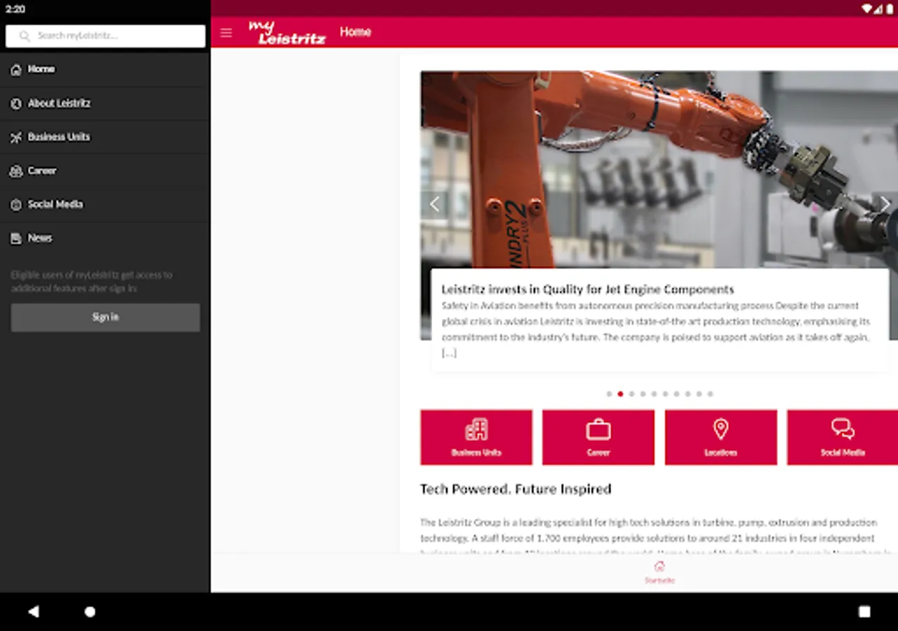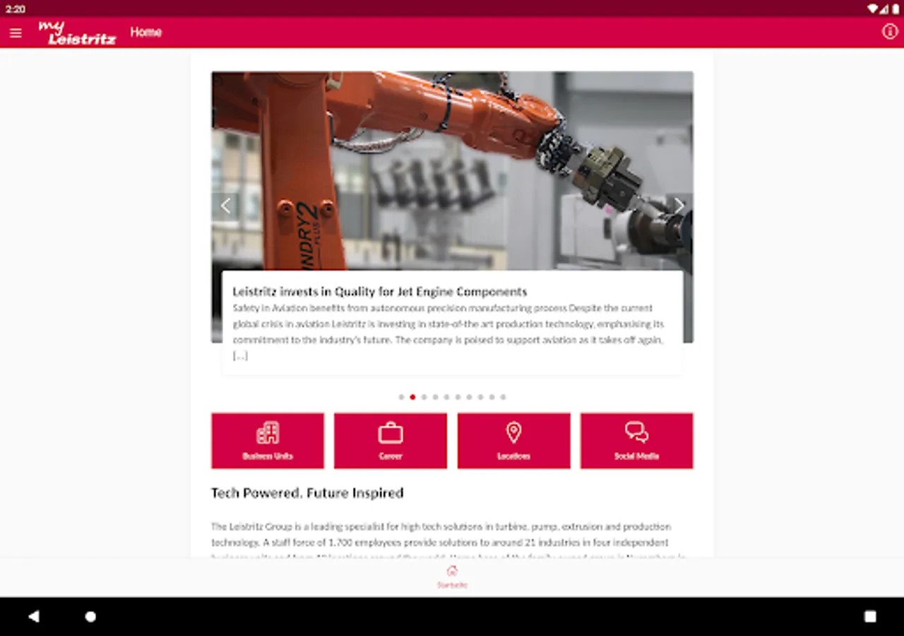 The MyLeistritz App is the central communication platform of the Leistritz Group, a solution provider for turbine components, screw pumps, extrusion systems, machine tools and dies. The app offers employees, customers, partners and interested parties up-to-date information about the company, its products and services as well as an aggregated view on the social media activities.
