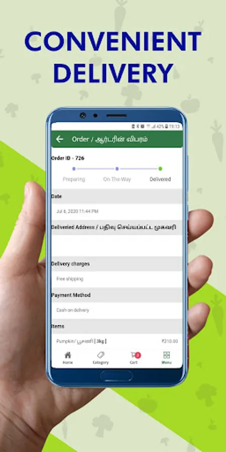 order products across categories like Vegetables, Fruits, Grocery products and Dairy products.