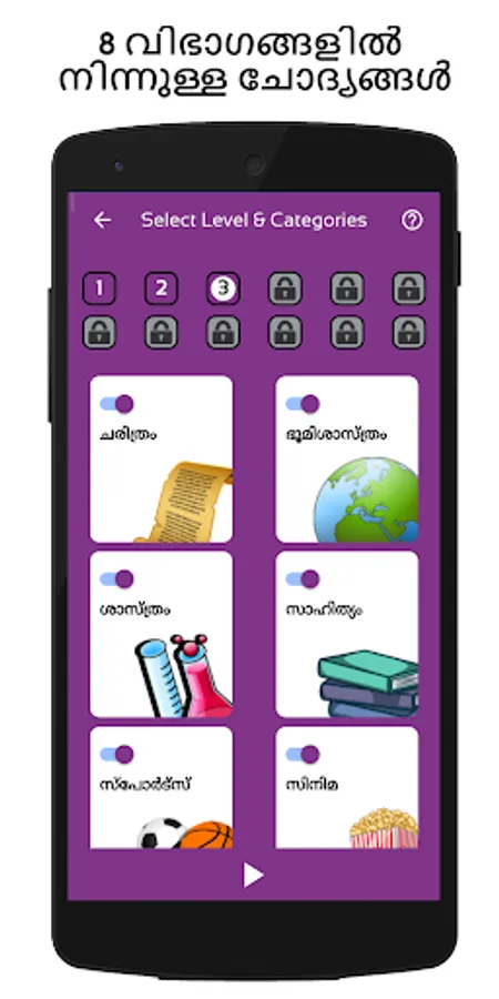 Test and boost your knowledge in a fun way by answering random selection of questions from 8 different categories spread across 12 levels of difficulty.