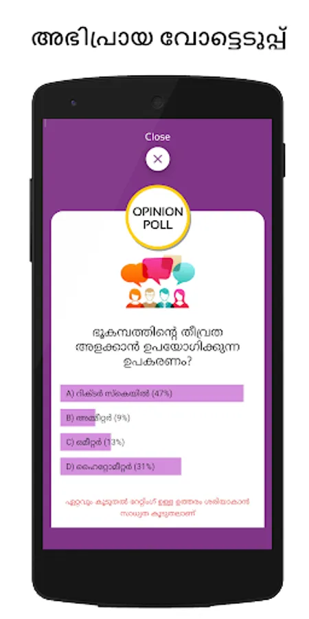 * Opinion Poll - Shows rating for all four answers. The answer with the highest rating is more likely to be correct.