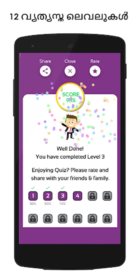 * This quiz game has 12 levels. There are 15 questions in each level.