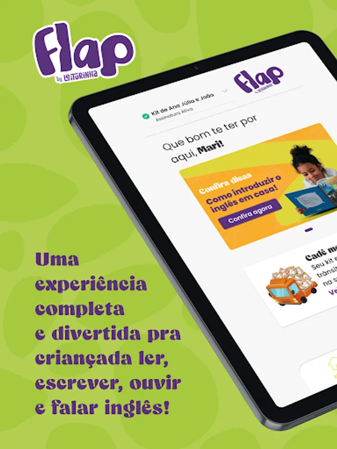 "Flap by Leiturinha is a subscription club for children's books in English to encourage the practice of the English language through fun!