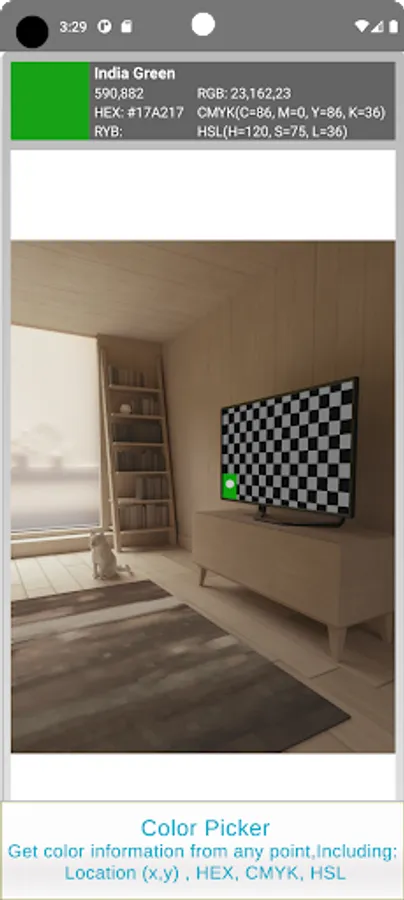 You can also see the colors RGB histogram graph, get specific color information using Color Picker tool from any part of the image, define your own palette for analysis, set color analysis accuracy or even see the actual color pixels by clicking the color box.