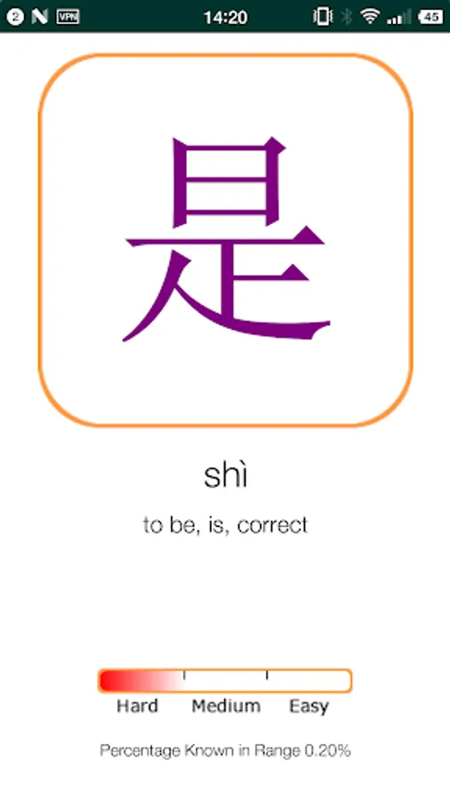 The Chinese Character Flashcard app is specifically built around the idea that rapid repetition is the best way to memorize Chinese characters. There are no distracting images and no multiple-choice answers to slow you down. Just you and your brain powering through the myriad of characters which will begin to stick very, very quickly! Tap along at your own pace to reveal a single character, tap again to reveal the pinyin and meaning.