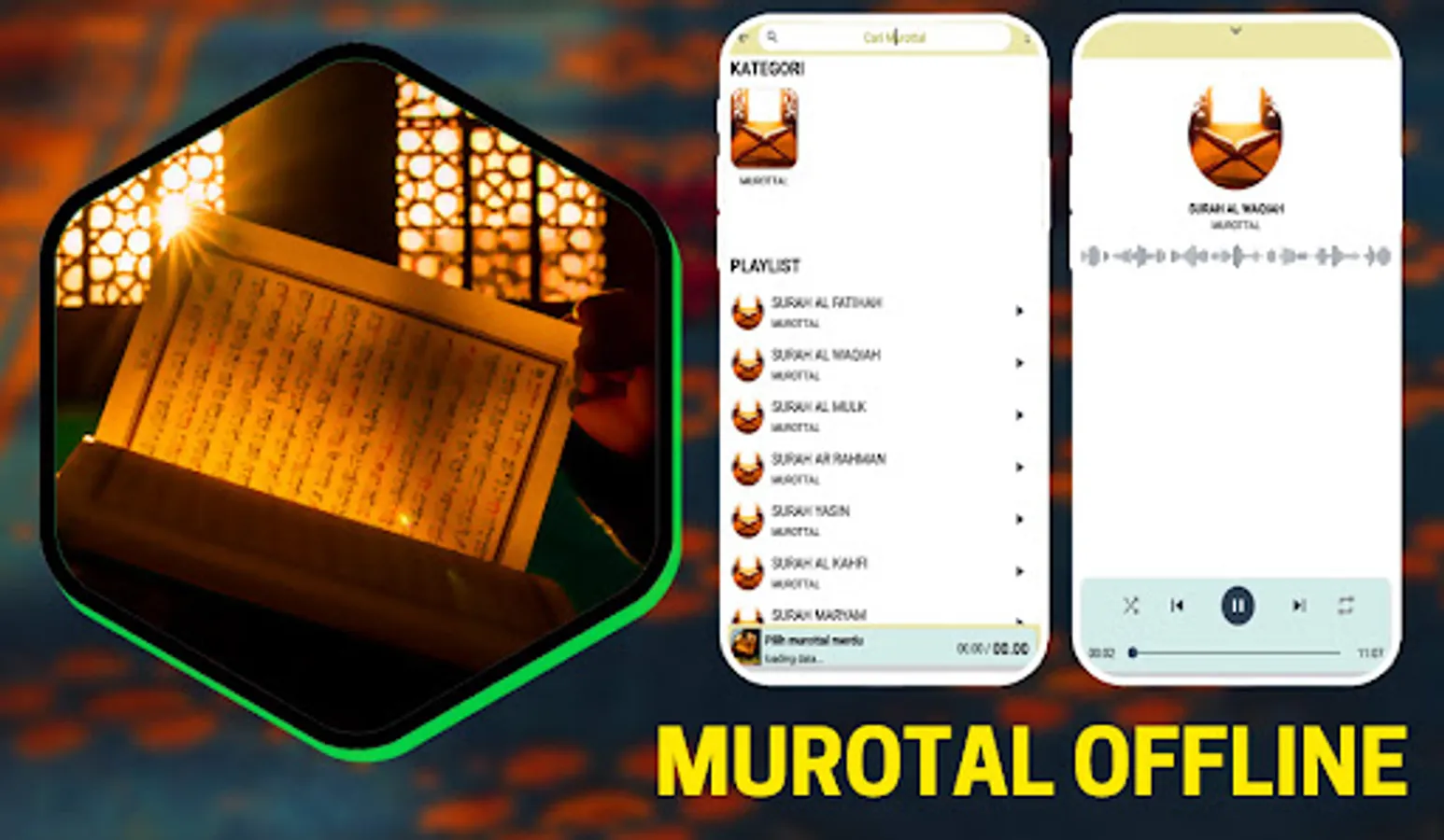 The murottal al waqiah mulk offline application provides a meaningful spiritual experience to its users who will become loyal friends on the journey to get closer to Allah through the recitation of the best melodious Al-Quran surah. We want to make the experience of listening to the full Quran easier, full of blessings and accessible to anyone & anytime.
