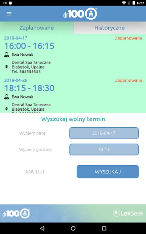 At any time you can view the schedule of the planned consultations. The application also features visits to dismiss and change their terms. All operations you perform just a few clicks.