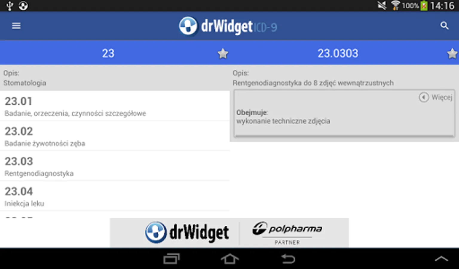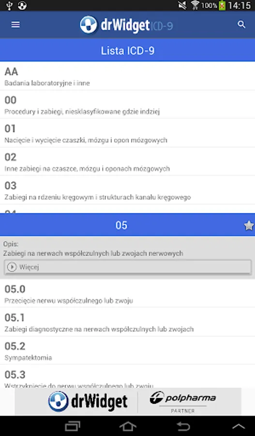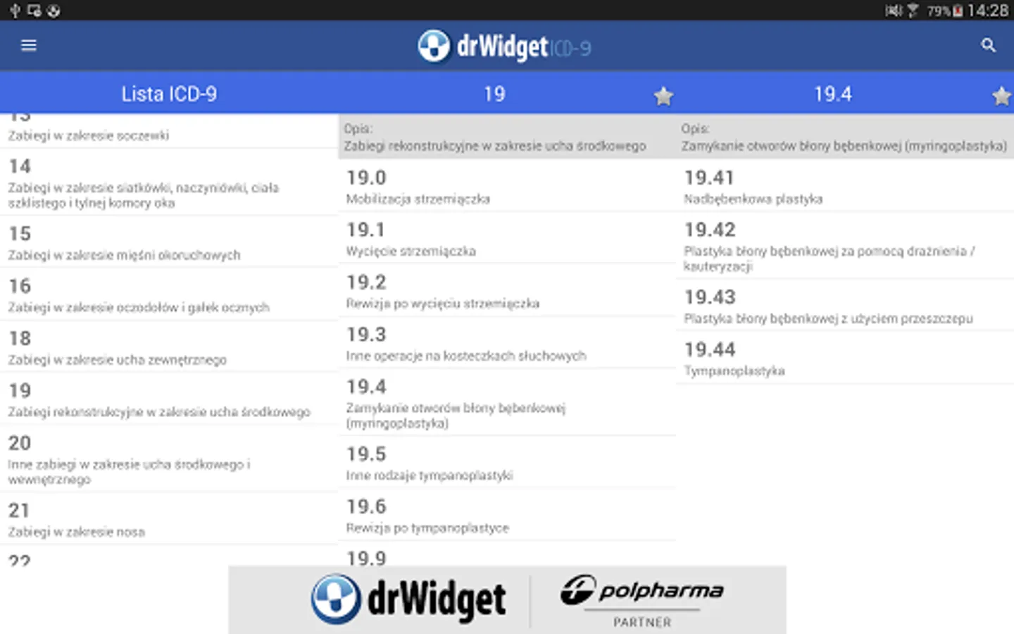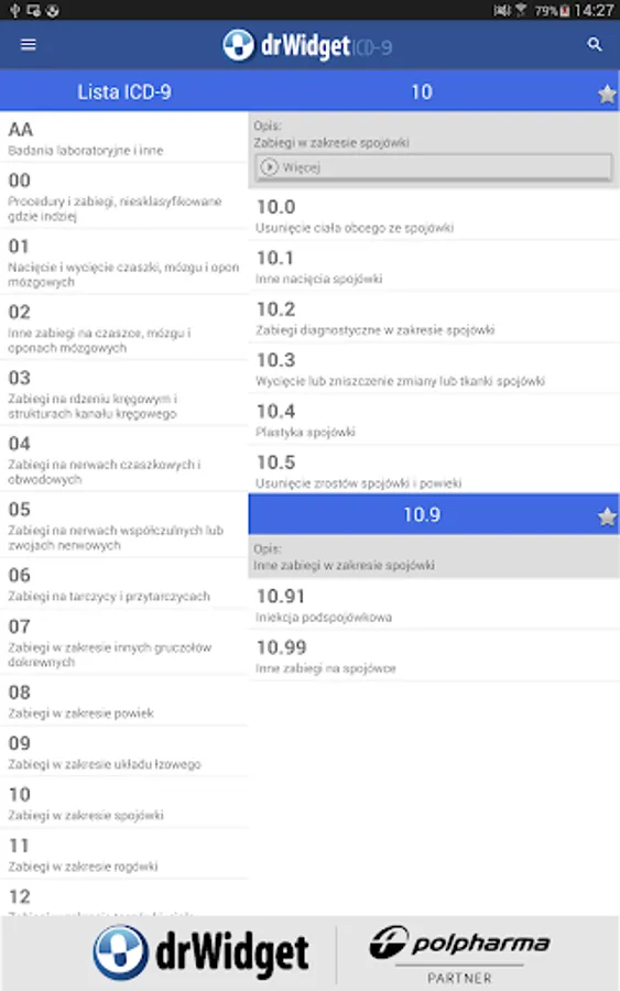 DrWidget ICD-9 was created just to facilitate daily work in medical units. Advantages of application are: intuitive menus, speed, clear presentation of data, automatic updates.