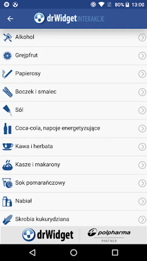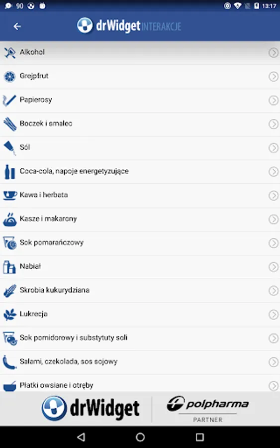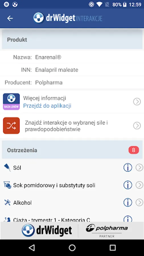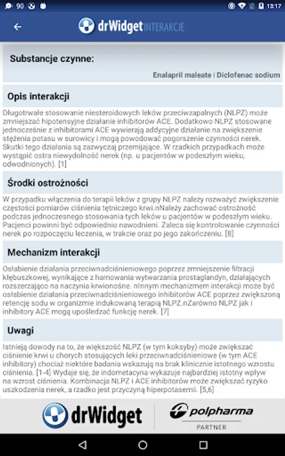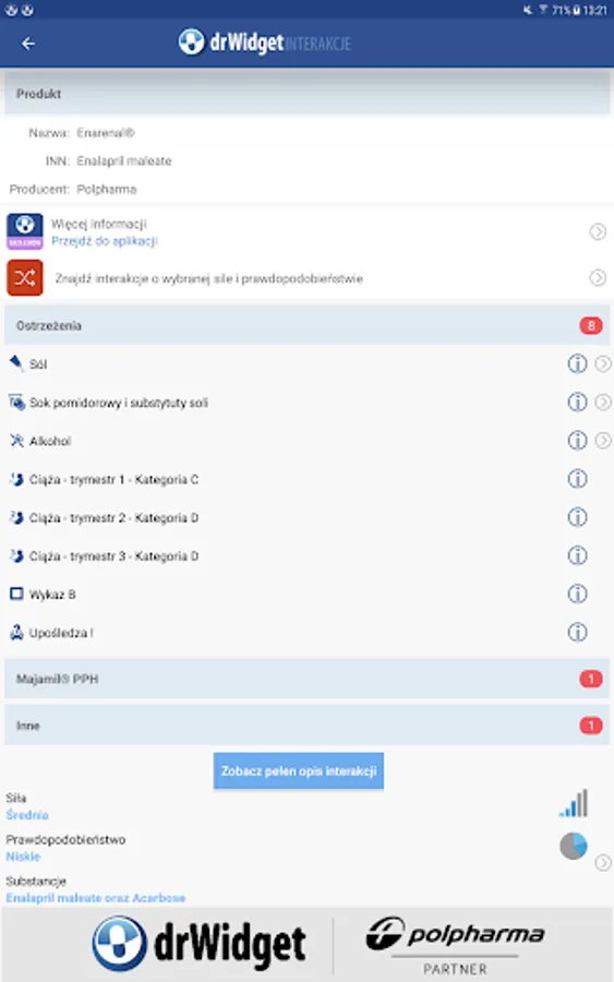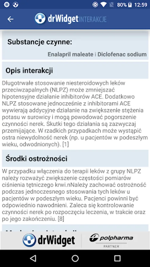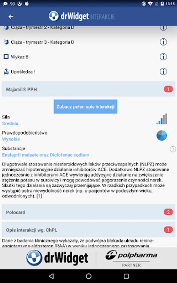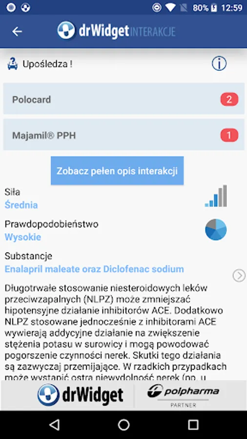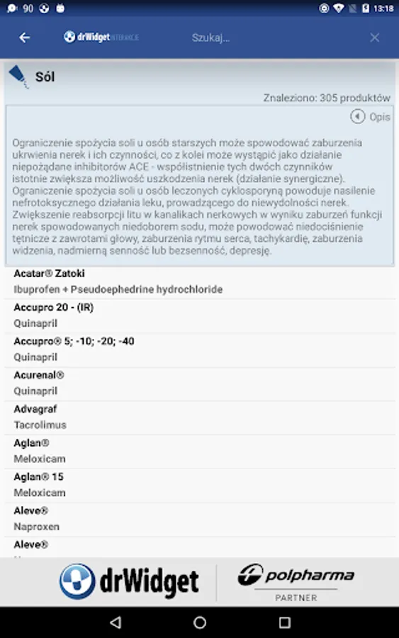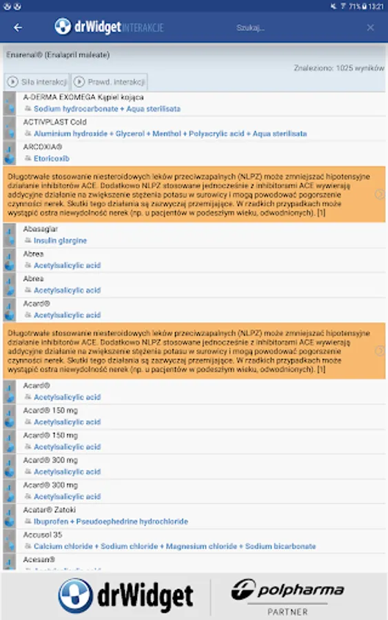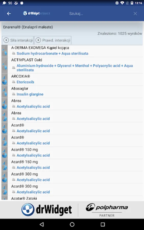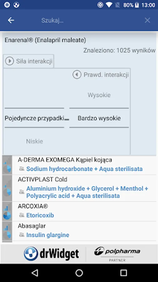 DrWidget Interaction is a very useful application which allows a quick and easy way to search for information about the impact of substances on the activity of one second in their coadministration. Posted here over 35 thousand. descriptions interactions.