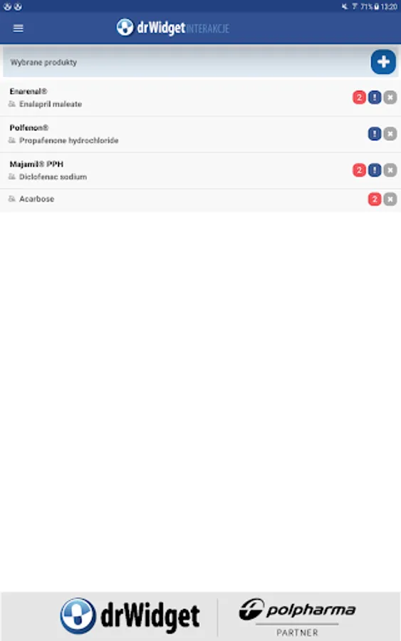 Pharmacological interactions can be harmful to the patient. With this application drWidget Interaction physician can select the appropriate method of treatment, reducing the risk of side effects or avoid them altogether. With applications benefit not only doctors but also pharmacists, even patients.