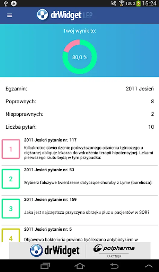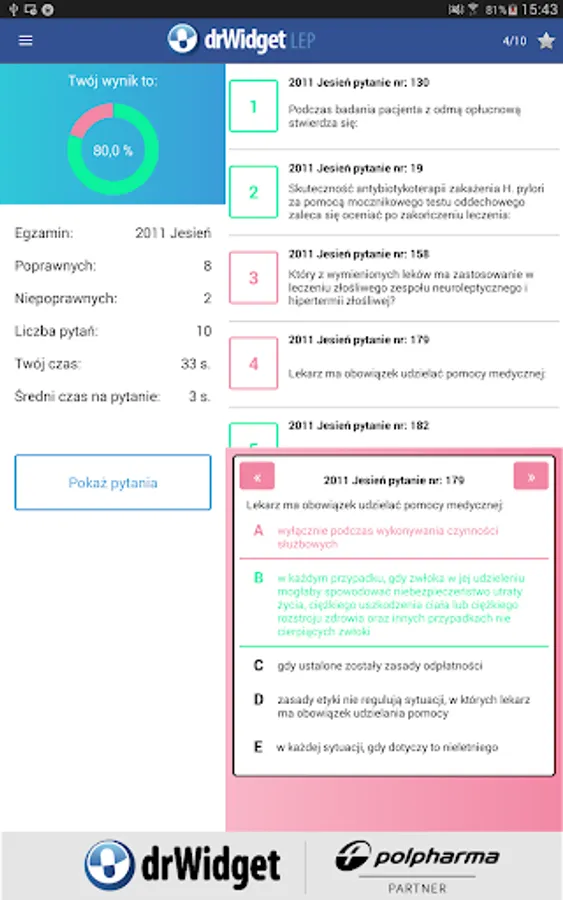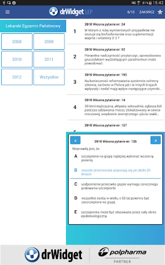 Using the mobile application drWidget LEP, in a convenient way to prepare for the Final Exam of Medicine. Users will find the base of examination tests from the years 2008-2012. Just download the application on your phone to be able to learn at any time.