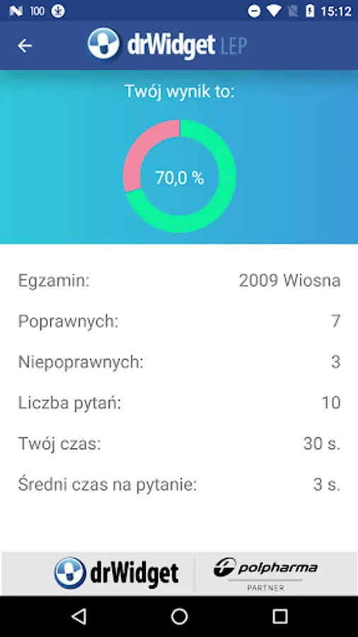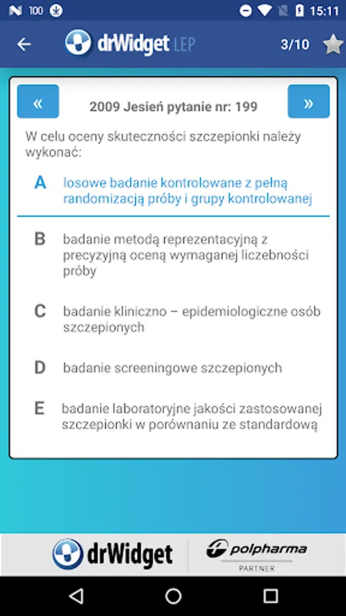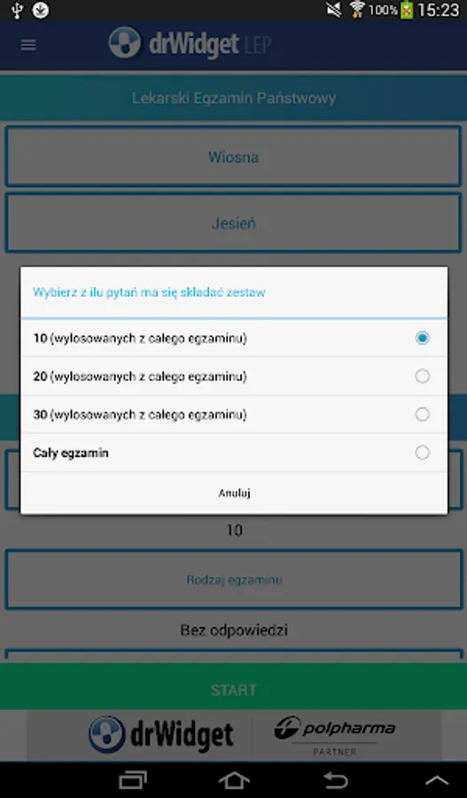 DrWidget LEP has been equipped with a number of useful options. And yes, those preparing for the exam can choose whether they want to solve the tests as a whole or a set of 10, 20 or 30 questions of the test. Questions can be answered by one and after finishing to know your score. The application can also immediately informed whether the selected answer is correct.