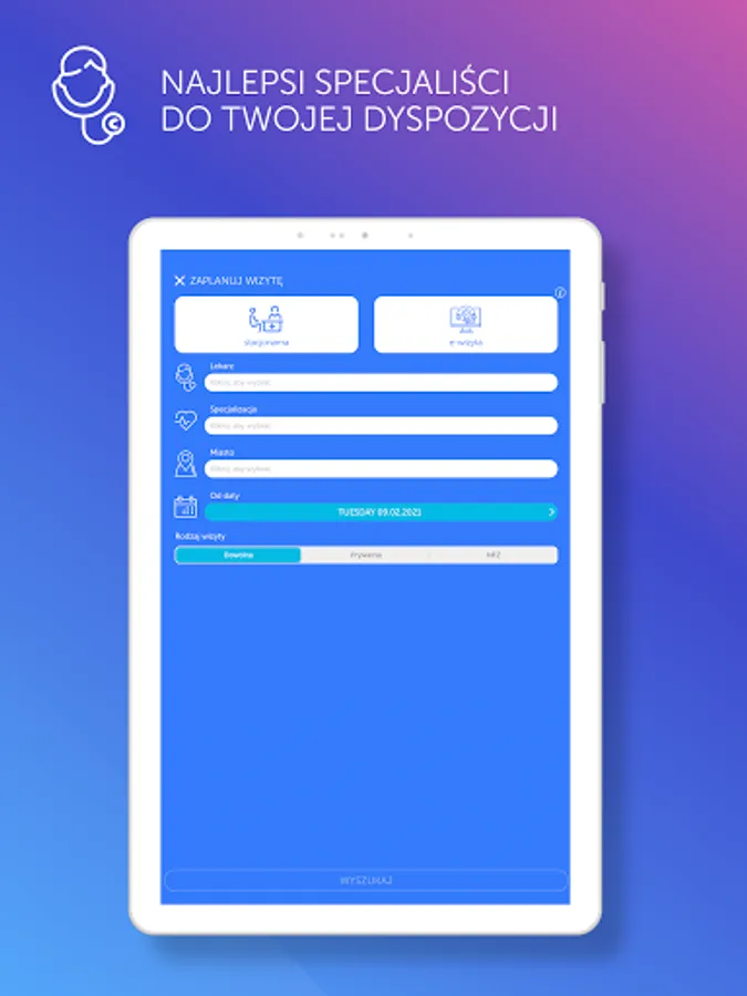 Create an account in the application or on the mydr.pl website and log in to your health!